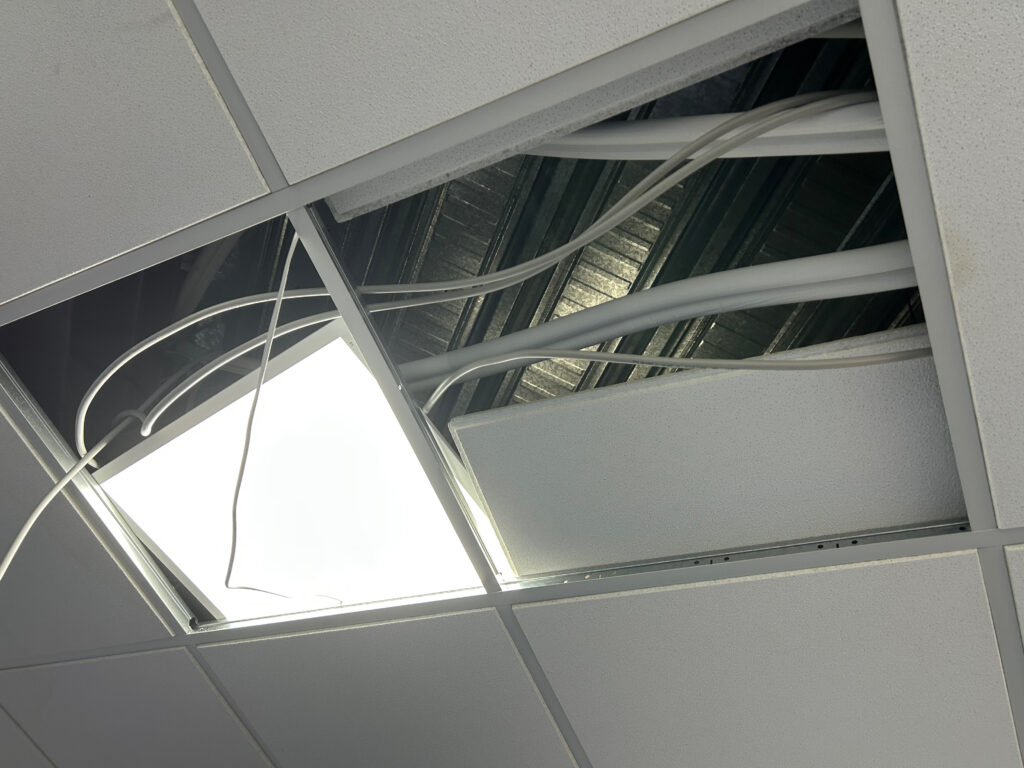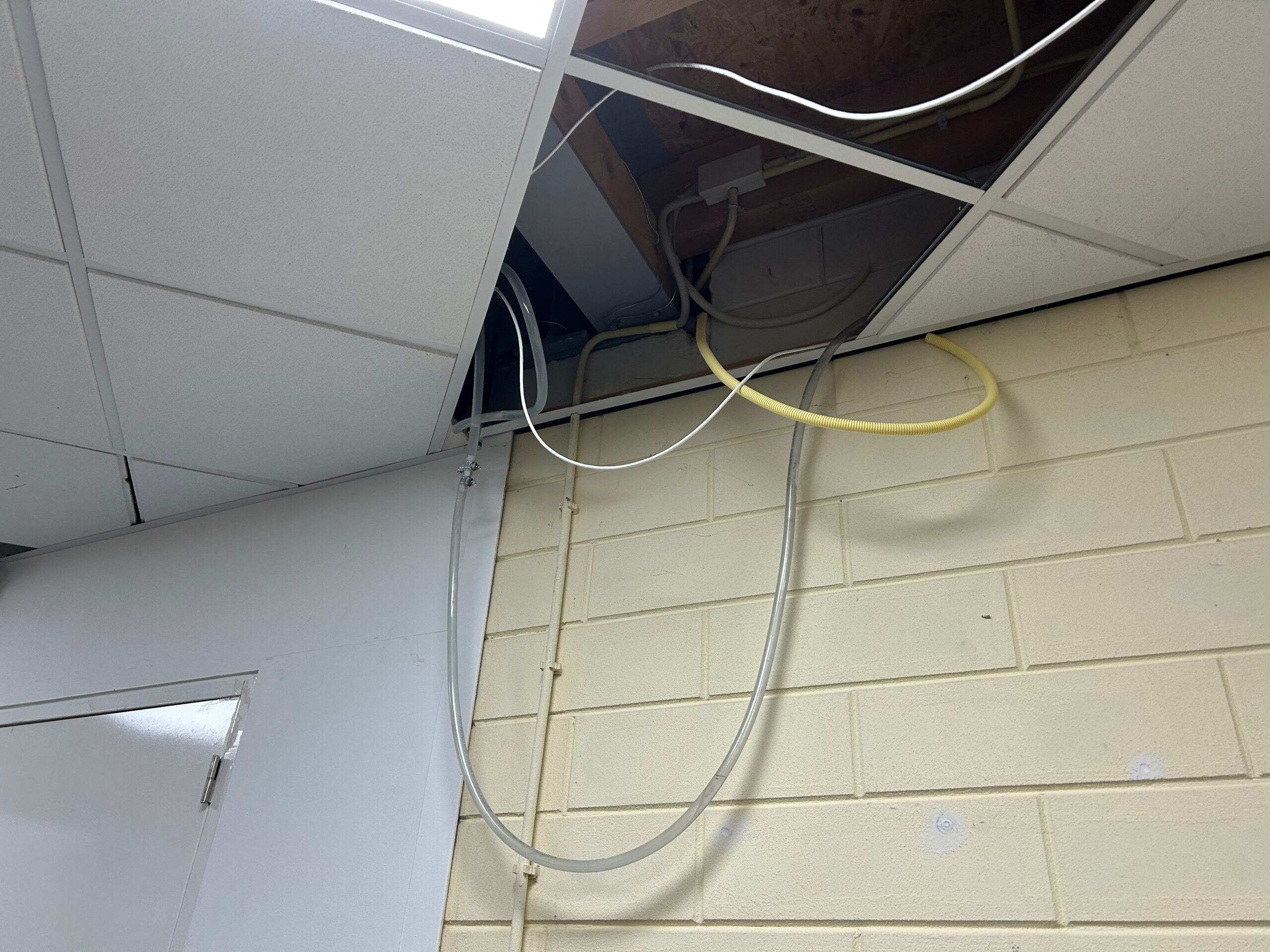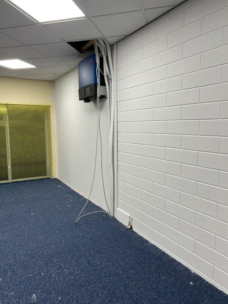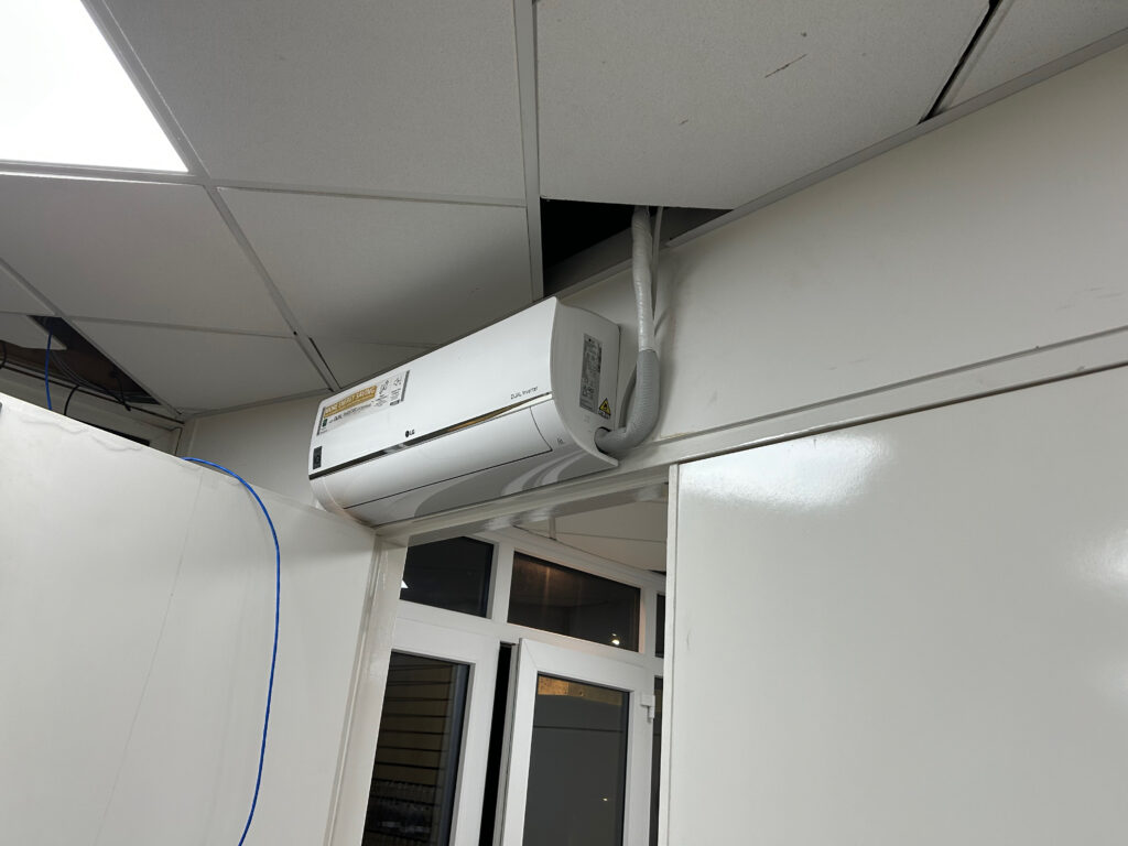 Ondertussen is het binnen niet zo heel warm meer; de vorige eigenaar heeft 4 airco’s opgehangen om het pand warm/koud te krijgen.